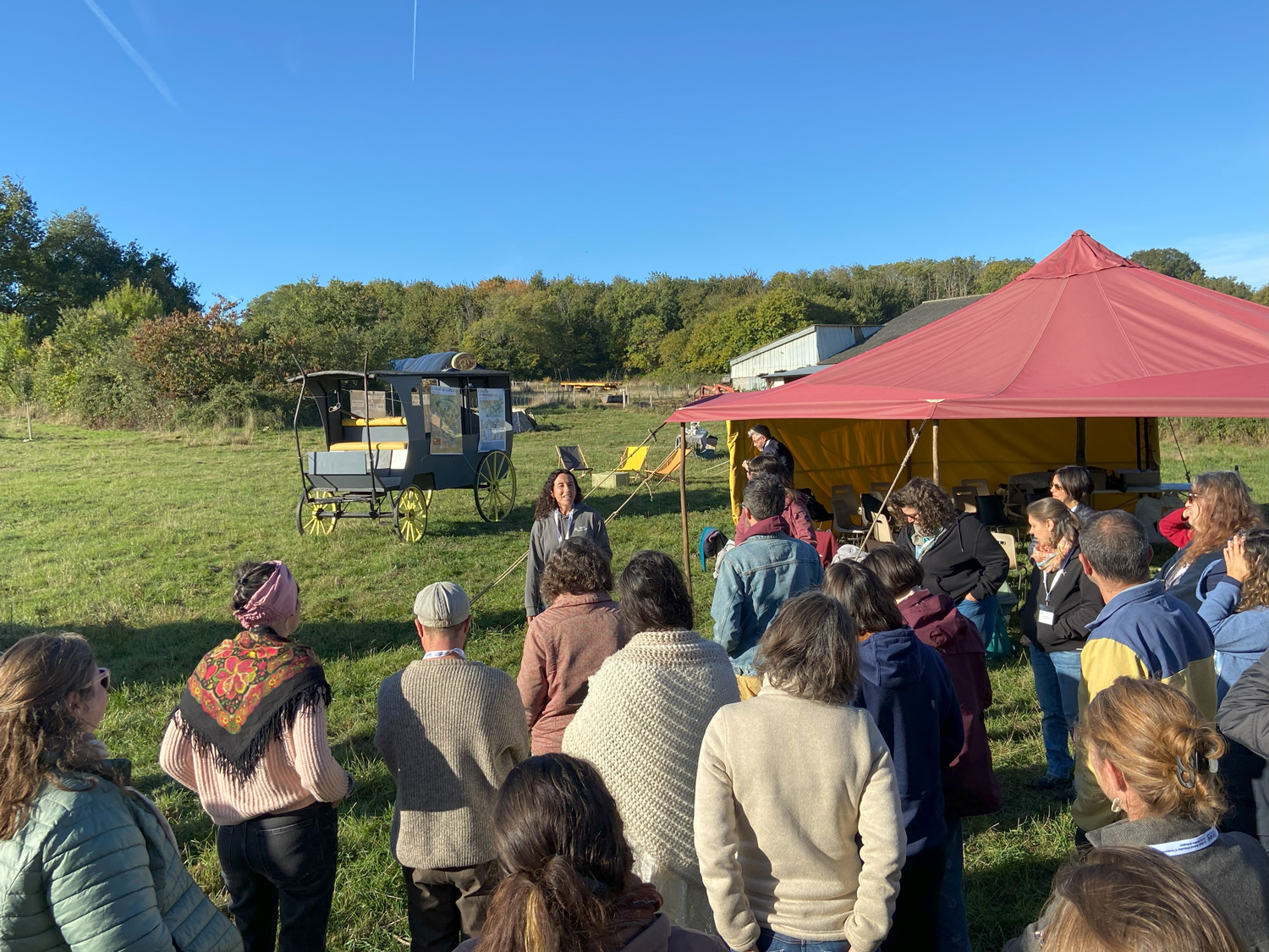 Une quarantaine d'acteur·ices de l'éducation à l'environnement ont assisté à la journée d'échanges des bienfaits de la nature sur la santé. Les participants immergés en plein champ ont également pu vivre les bénéfices de cette mise en nature !