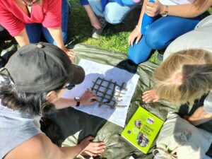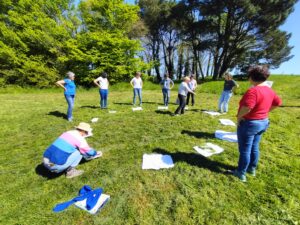 Je pense aussi à un frein qui revient souvent, « la météo ». Un jour de formation où il faisait vraiment beau, il s’est mis à pleuvoir très fort et d’un seul coup pendant un bon moment. Nous sommes retournés nous mettre à l’abri, mais au lieu de pester contre la pluie, tout le groupe s’est mis à rire en courant avec une grande bâche tenue au-dessus de nos têtes. La conclusion des enseignants a été que ce fût un grand moment de convivialité qui serait aussi génial à vivre avec les enfants. Comme quoi la pluie a aussi du bon !