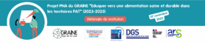 Après deux ans d’expérimentation le réseau GRAINE, en lien avec ses partenaires, organise une restitution ouverte de son projet d’accompagnement des PAT sur le volet « Éducation, sensibilisation à une alimentation saine et durable », soutenu par le Programme National de l’Alimentation. Ce webinaire qui aura lieu le vendredi 7 novembre de 10h à 12h, est ouvert aux collectivités et plus largement à tous les acteurs de l’éducation à l’environnement et/ou à la santé.