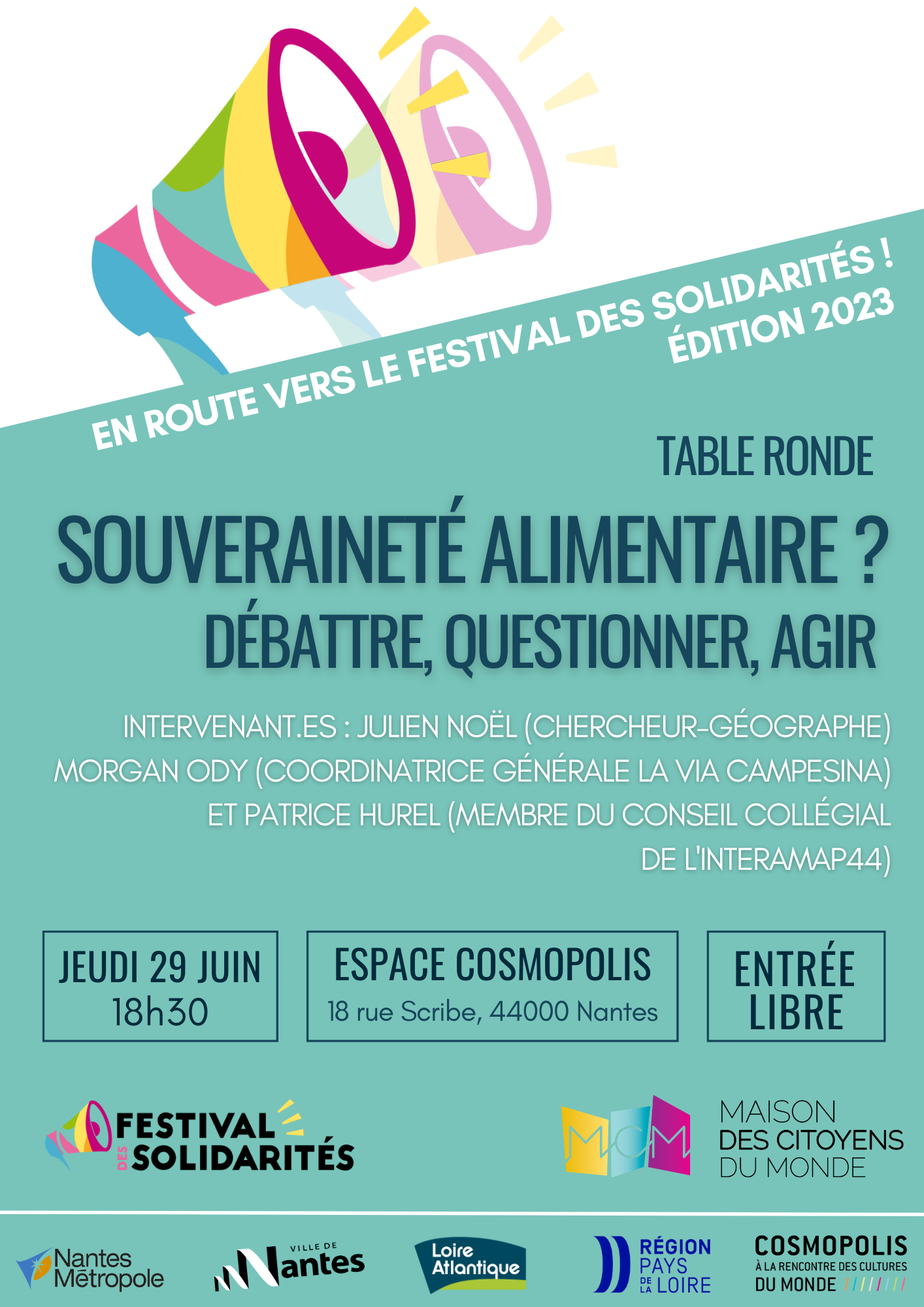 Rendez-vous le jeudi 29 juin, 18h30, à l'Espace Cosmopolis, à Nantes
