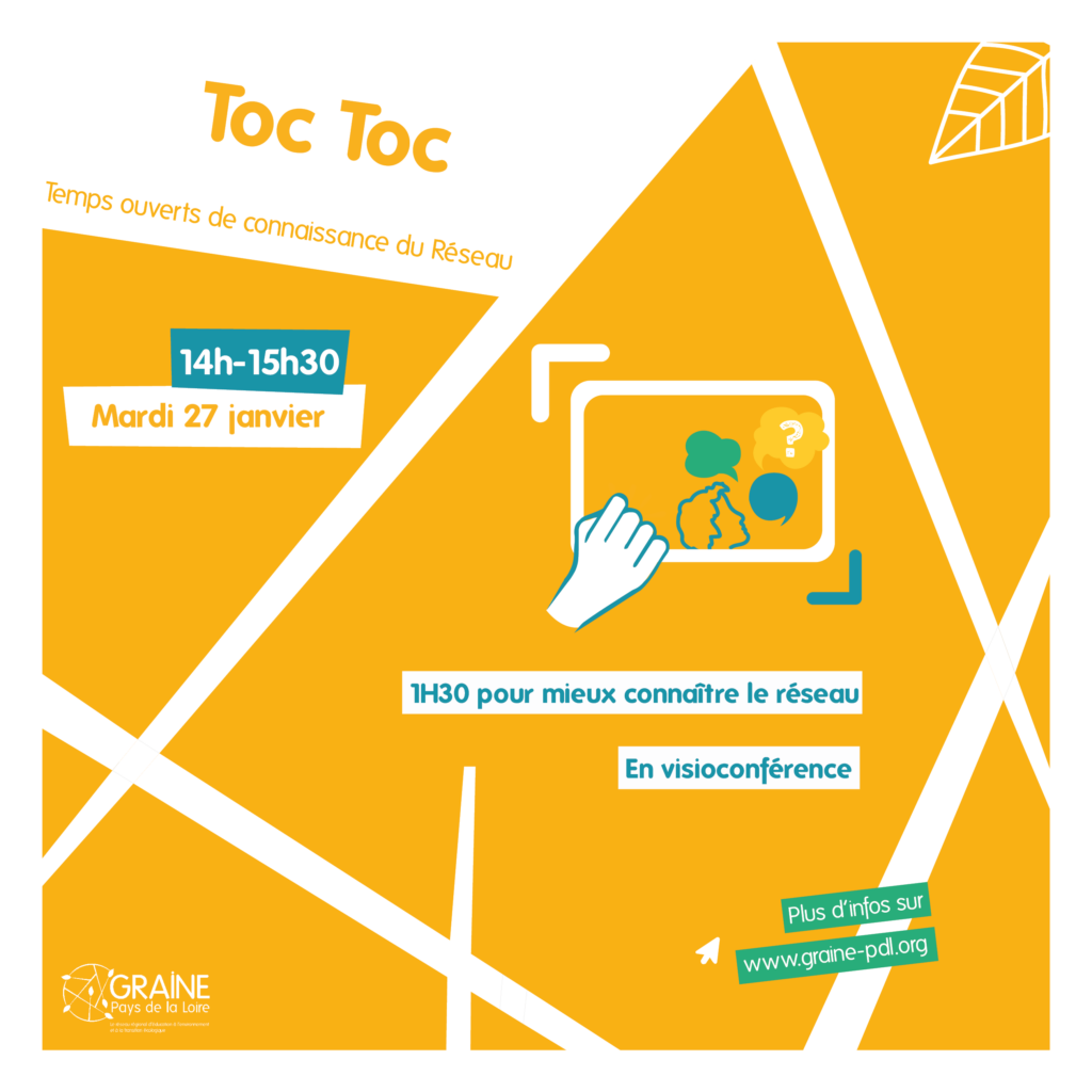Les Temps Ouverts de Connaissance du réseau «Toc Toc» sont des temps de présentation et d’échanges animés par l’équipe du GRAINE Pays de la Loire. Conçus pour répondre aux nombreuses sollicitations, ils ont été imaginés pour permettre aux acteur·rices de l’éducation à l’environnement et à la transition écologique de mieux connaître et comprendre les actions du réseau.