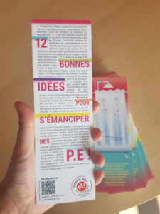 Seulement un ou deux stands de l’escape game est installé. L’animateur·ice invitent les publics passant à résoudre une ou plusieurs énigmes. Celles-ci servent de support à une discussion pour sensibiliser et transmettre des repères dans les gestes de réduction aux perturbateurs endocriniens.